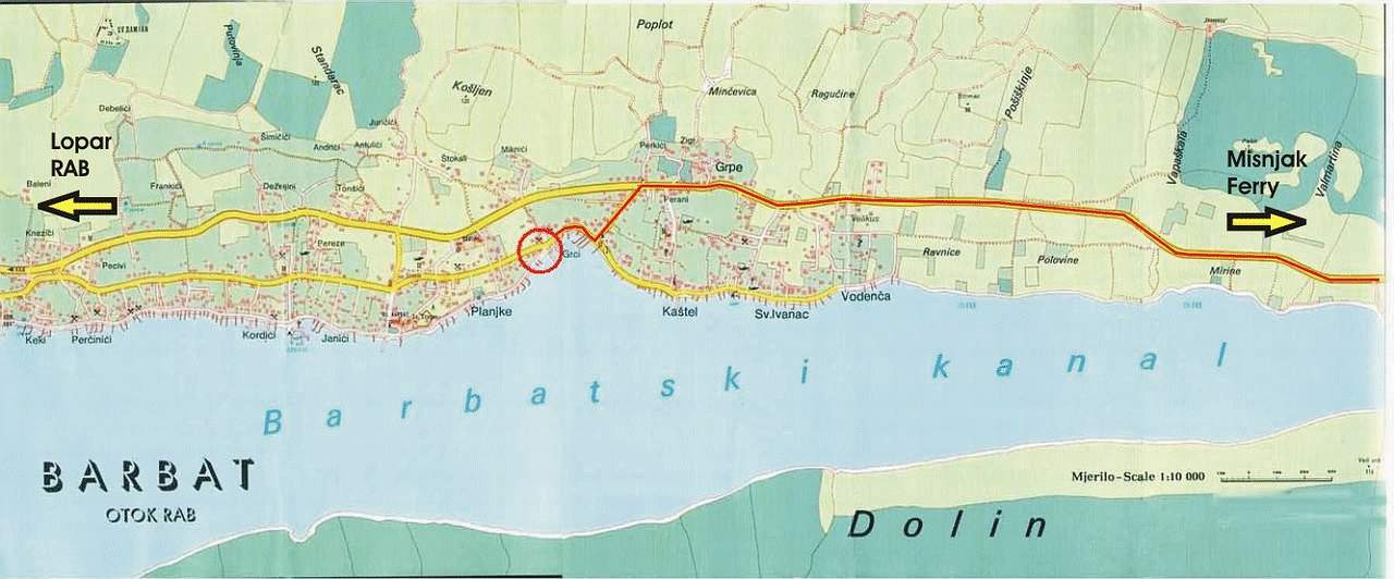 Fährverbindungen mit dem Festland verbunden. Am südlichsten Eingang fahren die Fähren von Mišnjak (Rab) nach Stinica (Festland) 8 bis 20 mal täglich in beiden Richtungen, nach Bedarf auch öfter. Die Fahrt dauert 12 Minuten. Von der Nordseite kommt man auf die Insel mit den Fähren, welche in der Saison 4 mal täglich von Lopar (Rab) nach Valbiska auf der Insel Krk verkehren. Schnelle Katamaranschiffe verbinden Rab mit Rijeka einmal täglich in beiden Richtungen und verkehren das ganze Jahr. Mit dem Bus ist Rab täglich, durch das ganze Jahr mit Rijeka und in den Sommermonaten auch mit Zagreb, verbunden. |